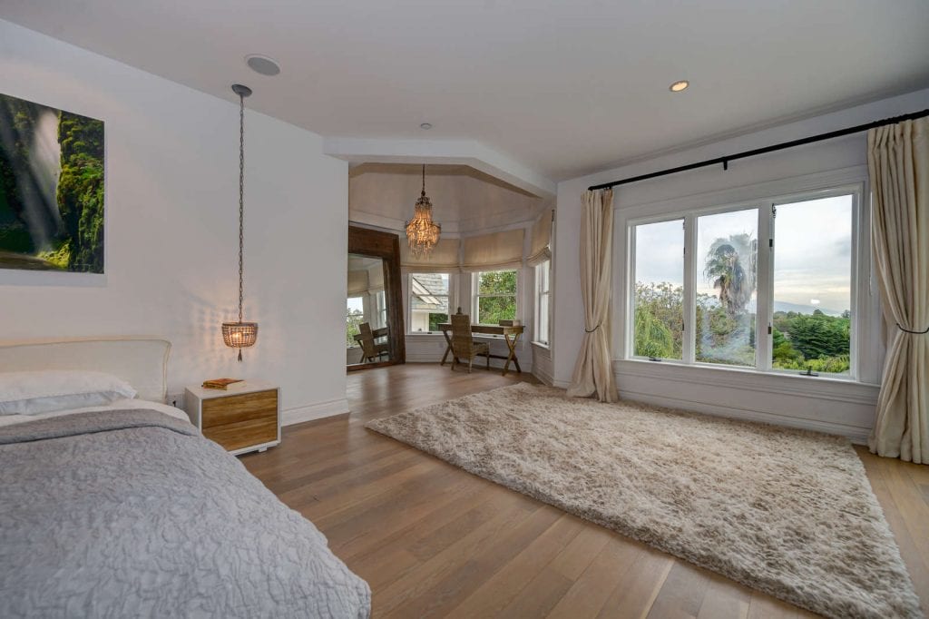 El dormitorio principal es muy amplio, y está decorado de nuevo con los colores fetiche de la actriz: beis, blanco y madera. Destacar las impactantes vistas del exterior. Ver amanecer desde la cama debe ser un auténtico espectáculo.
