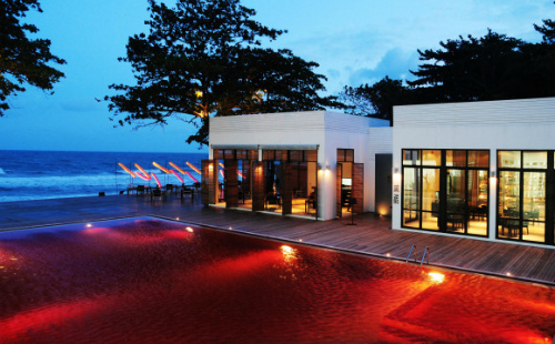 Se ubica a pocos metros de la playa virgen de arena blanca llamada Chaweng, por lo que puedes disfrutar de la brisa del mar desde la piscina. Su color rojo se debe a los mosaicos rojos, naranjas y amarillos que envuelven la piscina.